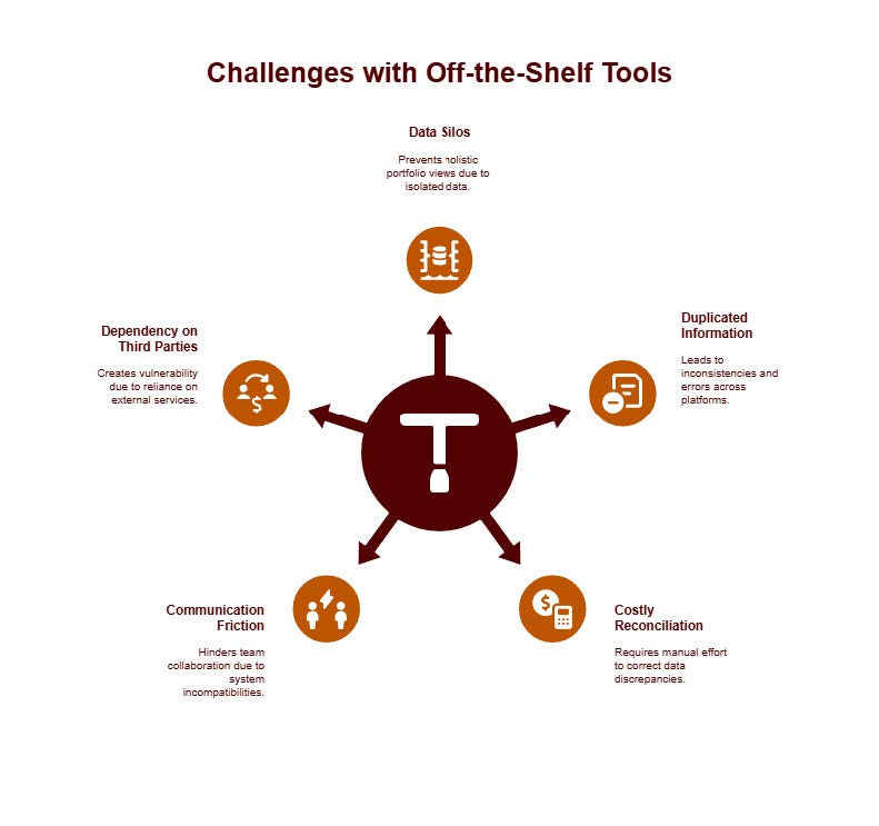First, off-the-shelf products typically control their own development roadmaps. Feature requests enter lengthy queues, and your ability to innovate becomes constrained by someone else’s priorities. Meanwhile, your portfolio companies face rapidly evolving markets demanding immediate adaptability.