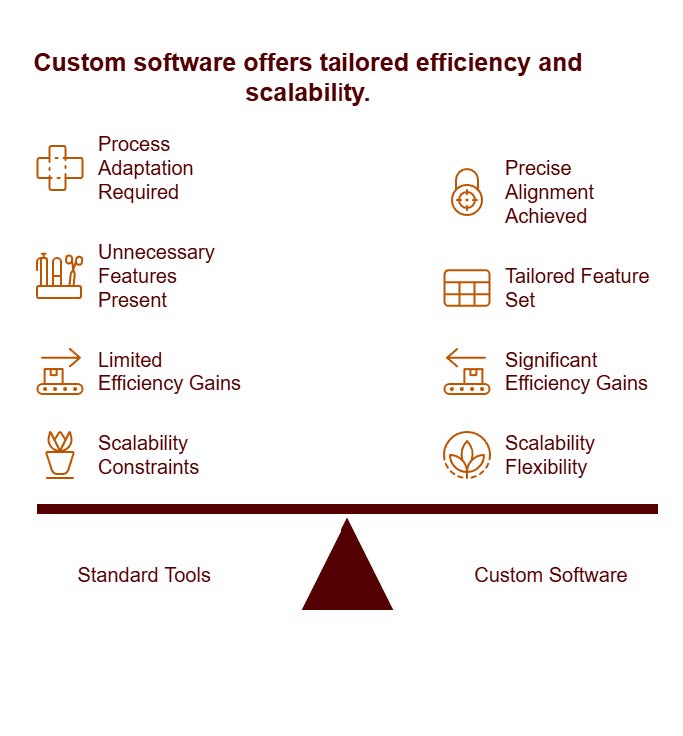 Unlike pre-packaged solutions, custom software delivers long-term value despite higher initial investment, primarily through increased efficiency, lower maintenance costs, and superior alignment with business objectives.