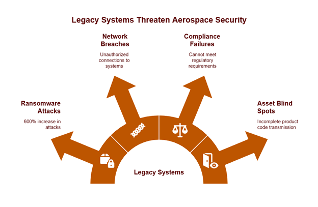Legacy aerospace systems create critical security vulnerabilities that threaten both operational safety and regulatory compliance, requiring immediate strategic intervention.
